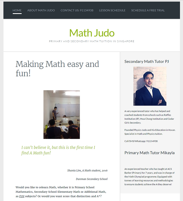 To complement the sciences, I've set up Math tuition classes to improve the mathematical abilities of students, so that they can better tackle the science subjects. Please visit: mathjudo.com or click the image below for more information.